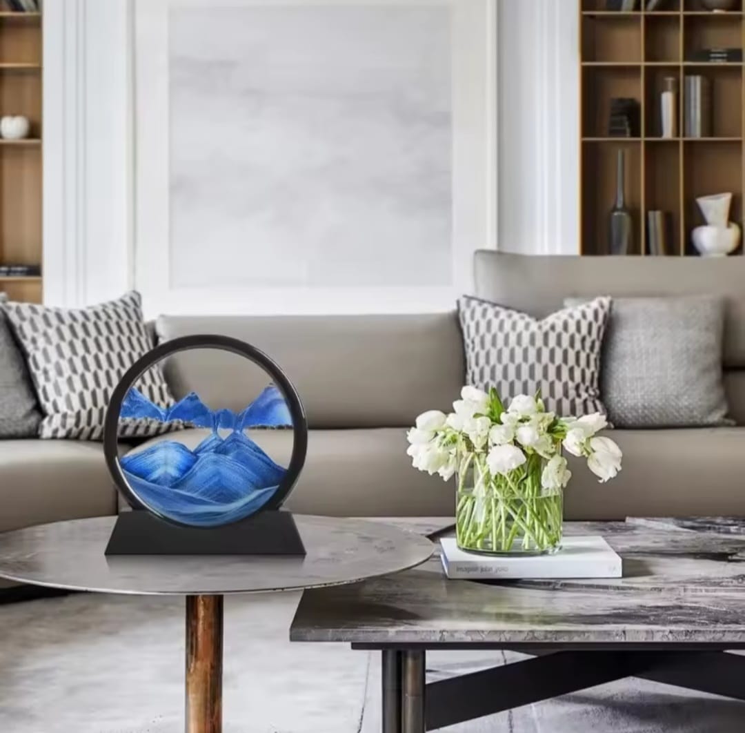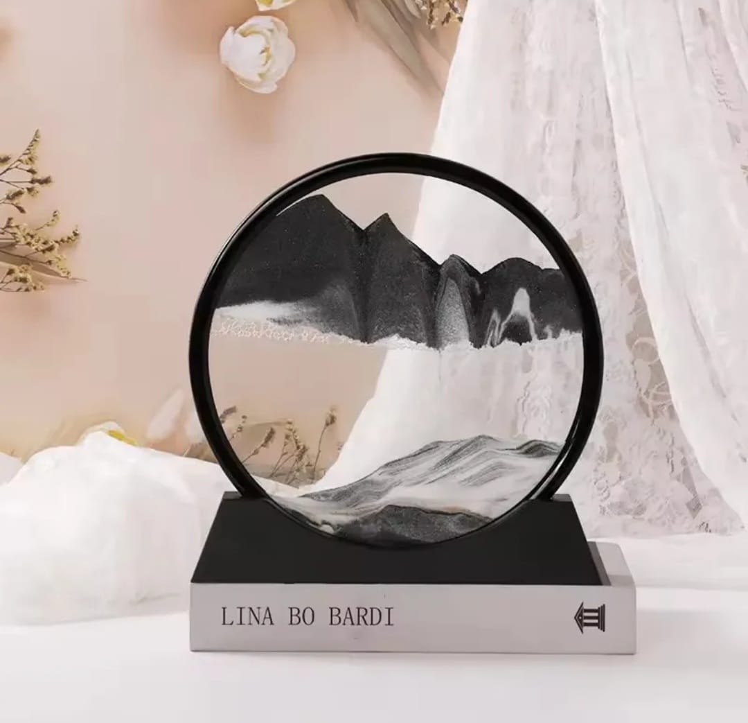 Este elegante cuadro de arena en movimiento es una pieza decorativa hipnótica que combina arte, relajación y diseño moderno. Al girarlo, la arena fluye lentamente creando paisajes únicos y cambiantes, similares a montañas, dunas o mares abstractos. Cada movimiento genera una obra irrepetible que transmite calma y equilibrio visual.
